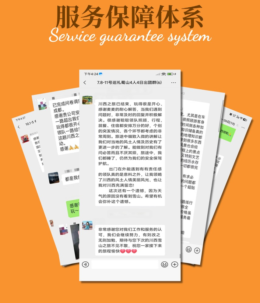 5、若因客人自身原因或天气原因影响、景区政策性关闭导致行程中部分项目无法进行,费用不退不换,敬请谅解。日照金山等景观受天气原因影响较大,如果没有看到不退费,也不接受此类投诉。
